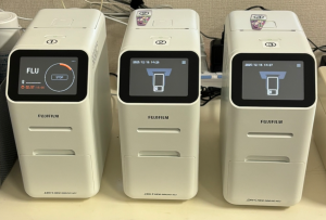 富士ドライケムを導入。インフルエンザ罹患後、熱の上がり始めに検査できます。一刻も早く診断そして治療可能です。